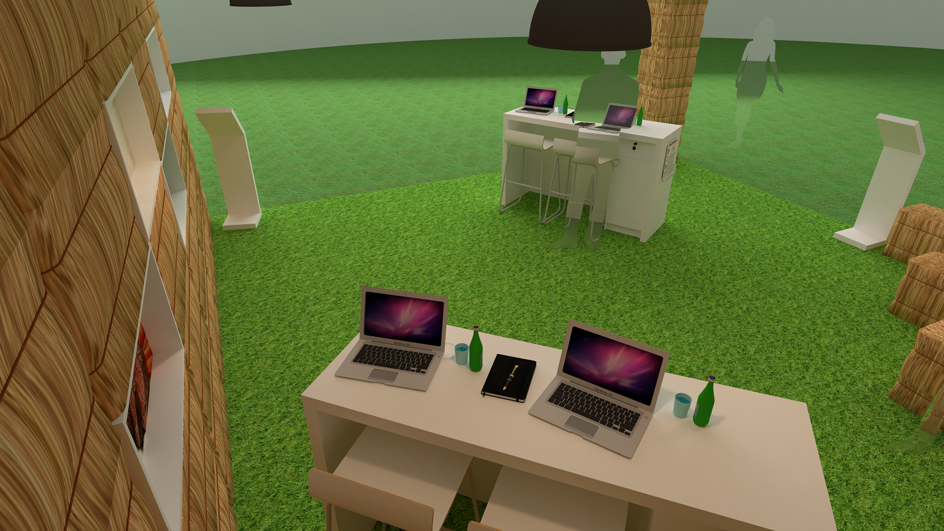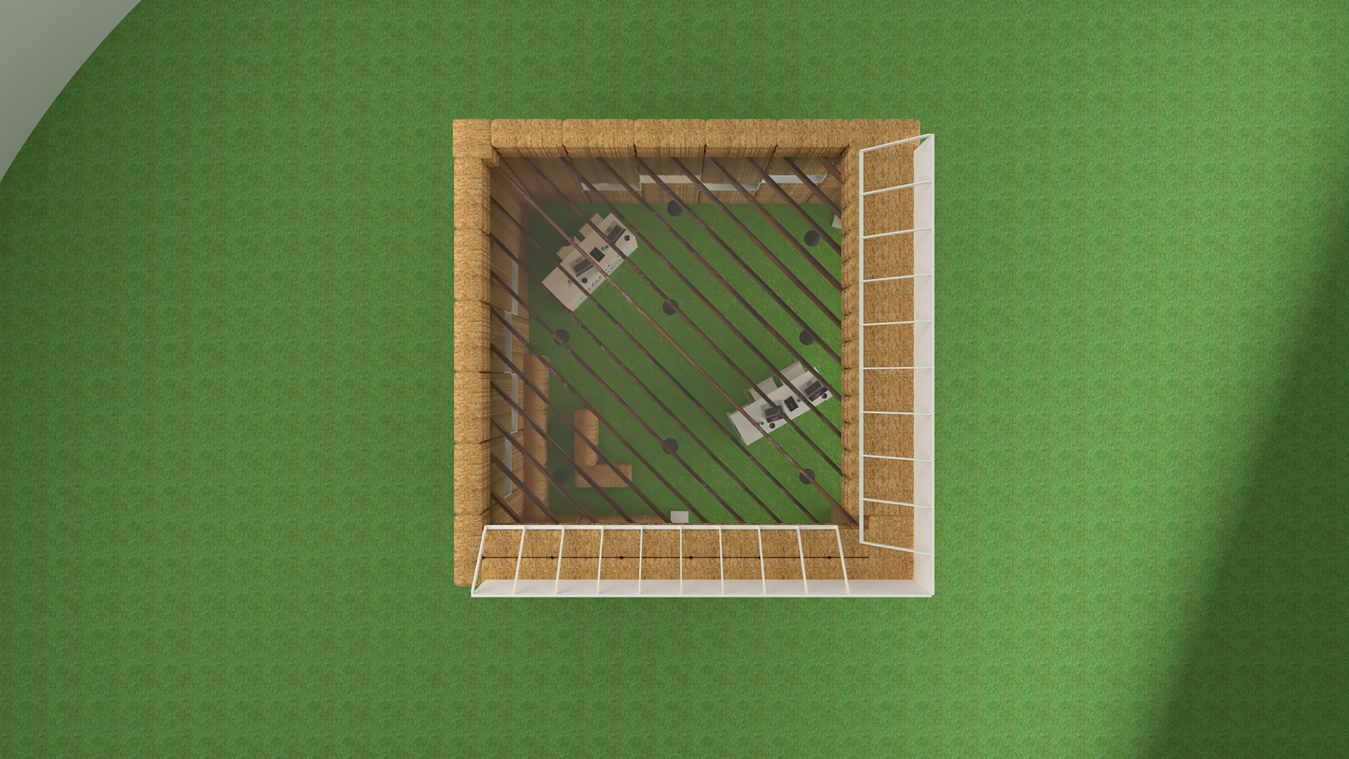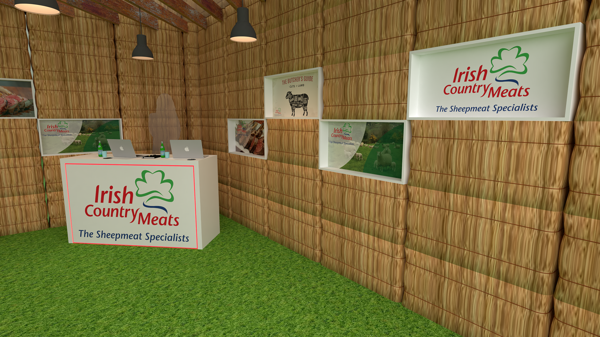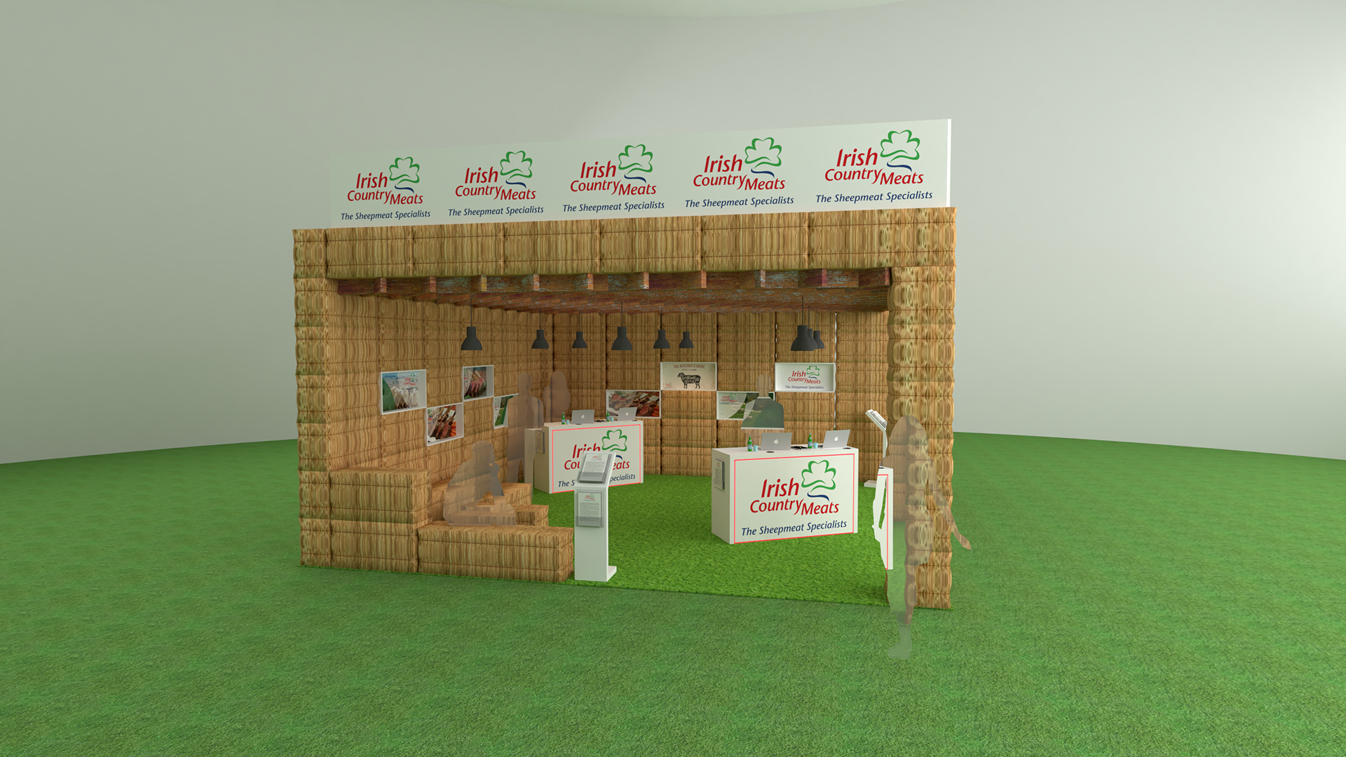 Concept design for Irish Country Meats pop up in fire retardant hay bails with seating areas.